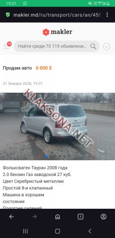 Фольксваген Тауран 2008 года 2.0 бензин Газ заводской 27 куб. Цвет Серебристый металлик Простой 8-и клапанный Машина в хорошем состояние Подогрев сидений Центральный замок Едет бодро не дымит Не чего делать не нужно сел поехал Вовремя всё менялось Горажное состояние ТО и страховка свежая Цена; 6000 торг Обмен приветствуеться